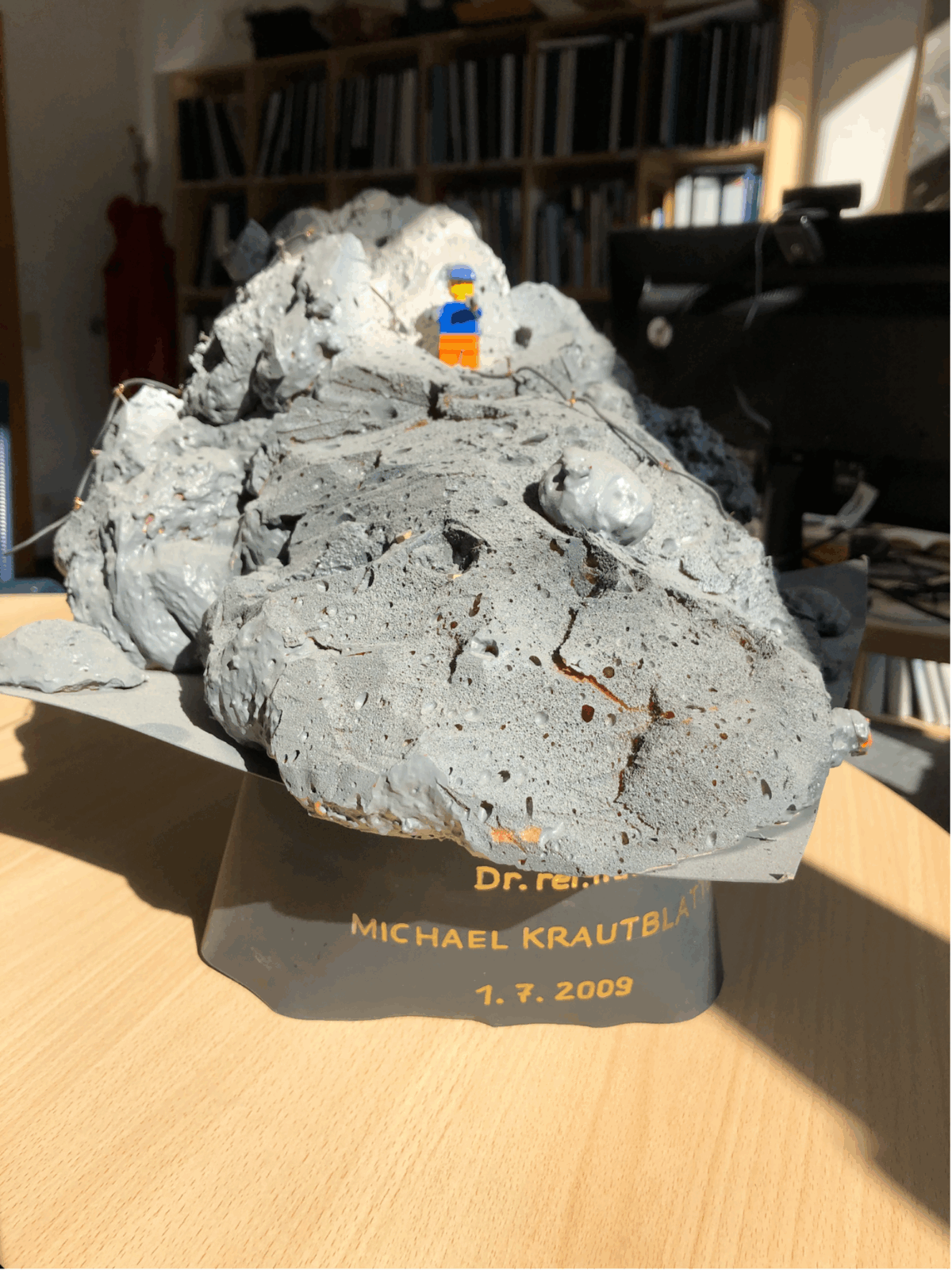 This miniseries features the tradition of ‘PhD hat’ making in German research institutes and universities. For those of you unfamiliar with this idea (as I once was), this is one of the final milestones a graduate student has before they are officially a “Dr.”. Upon the successful defense of a thesis, the labmates of the PhD student craft a graduation hat from a mishmash of scrap cardboard and memorabilia. Hours of work go into these beloved pieces, and you can often find these hand-made creations fondly perched on a shelf in faculty’s offices.