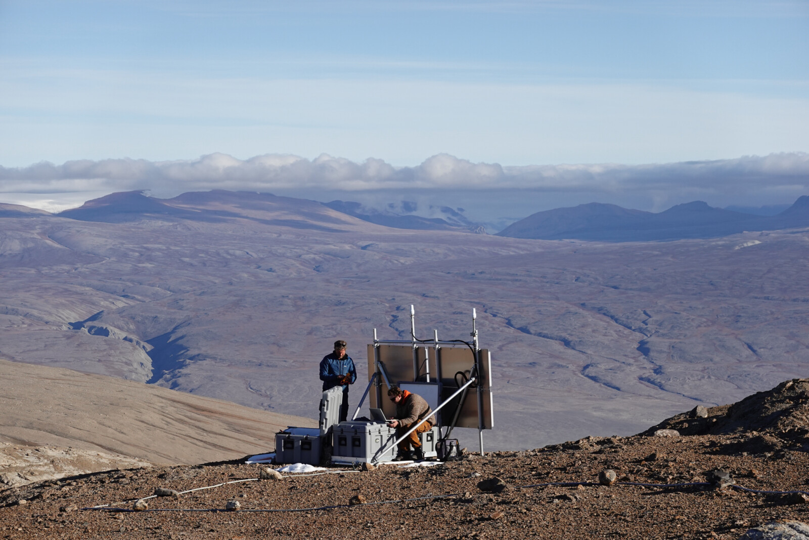 General maintaince on the GNET station HRDG in East Greenland. Picture courtesy by Jean-Marie Bärtsch.