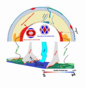 For more than two decades, seismologists have known that the lowermost mantle isn’t uniform. Early studies (e.g. Garnero & McNamara 2008; Burke et al., 2008) proposed the existence of two continent-sized “blobs” of dense material sitting just above the core; one beneath Africa and one beneath the Pacific. These regions are now widely known as LLSVPs (Large Low Shear Velocity Provinces), because seismic waves slow down dramatically as they pass through them (Lekic et al 2012).
