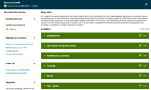You can also highlight your 5 most important works. Do not forget to check all automatically added / imported items and replace those that are confusing: for example, if you have abstracts from EGU conferences (published on egusphere), they appear automatically labelled as “preprints”. If you have many of those, a potential reviewer might think that you produce more preprints than actual papers. To avoid this, you can delete an imported entry and replace it with a manual entry that is labelled “conference paper” (attention: you cannot edit imported entries, only replace them). Another typical problem: some imported entries do not show the contributors – annoying for someone who wants to see your first author papers. Again, the solution is to replace it with a manually added entry.