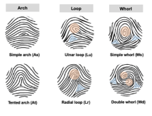 Fingerprints comprise friction ridges on finger pads. They were first classified (Figure 10) by Purkinje in 1823, a classic of scientific literature. The oldest prints date back 6000 years to earthenware on