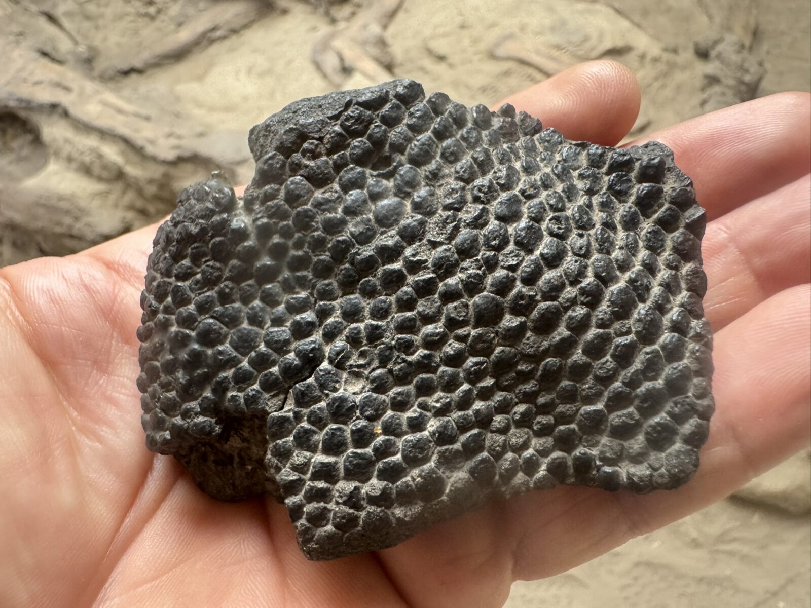 • Skin impression preserved as ironstone cast