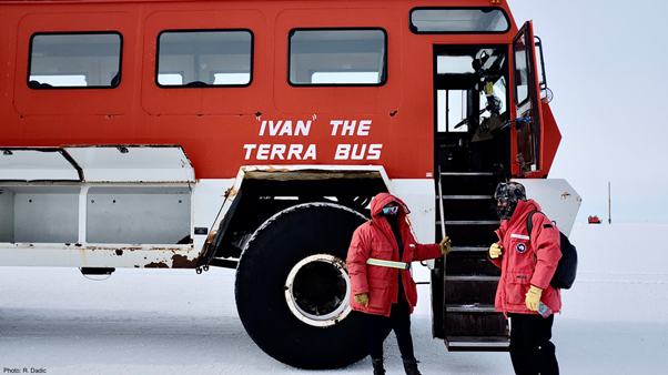 Picture 2:  IVAN, the Terra bus transportes the Americans and Kiwis to Mc Murdo and Scott Base. (Photo: Ruzica Dadic)