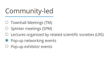 - meet-ups with the organisers of community events, such as the Early Career Scientist Representatives.